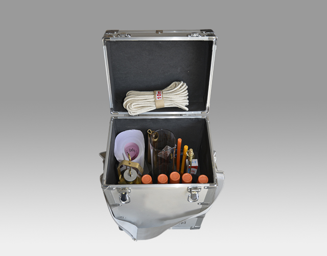 內部裝件:采樣筒、保溫盒、5m量油尺、試水尺、試水膏、5m靜電繩、1000ml玻璃量筒、溫度計、 石油密度計、石油計量表、(用戶可根據(jù)需要調換內裝物件)